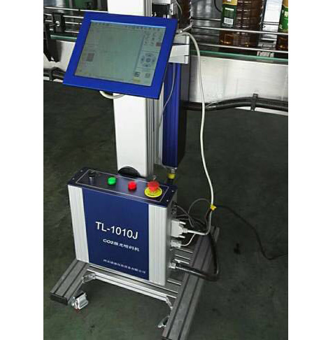 激光式噴碼機(jī)用于在包裝瓶、桶等包材上噴印時間、日期等標(biāo)識字符。機(jī)器價格較高,無耗材,防偽能力強(qiáng)。