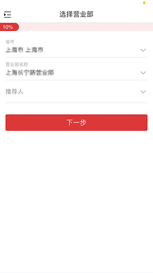 2、選擇營業(yè)部,選填推薦人,然后點(diǎn)擊【下一步】。